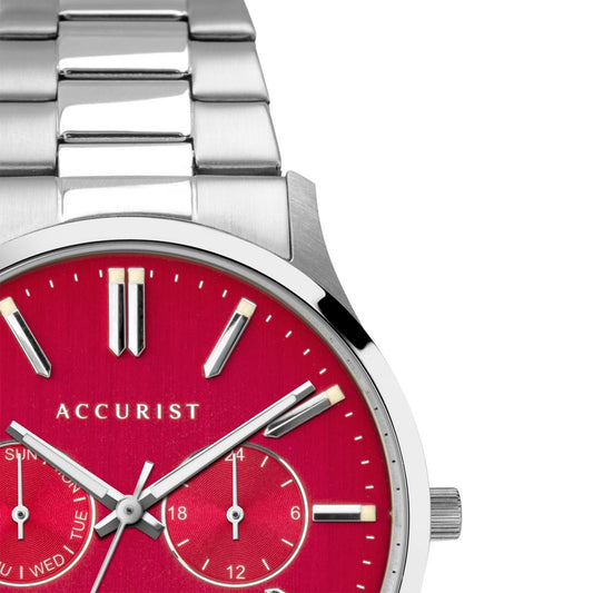 Accurist Mens Watch with Red Dial and Silver Bracelet 7405
