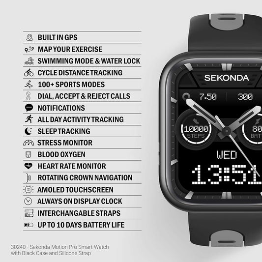 SEKONDA Motion Smart Watch | Black Case & Silicone Strap | 30009