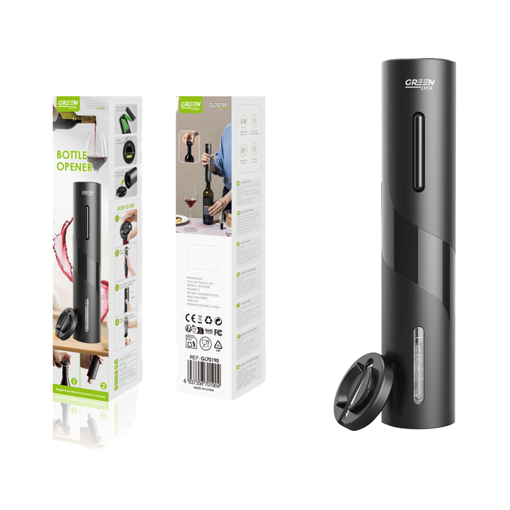 - Design: A sleek, black ABS plastic body with a "liquor-like curve" and a transparent window to view the cork removal process.